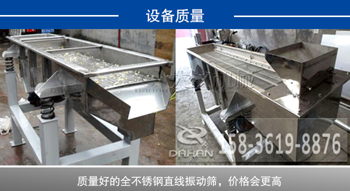 般市場上都會這樣說,質量好的全不銹鋼直線振動篩,價格會更高,因為其在做工方面更用心,技術方面投入更大,當然市場報價也會更貴些。