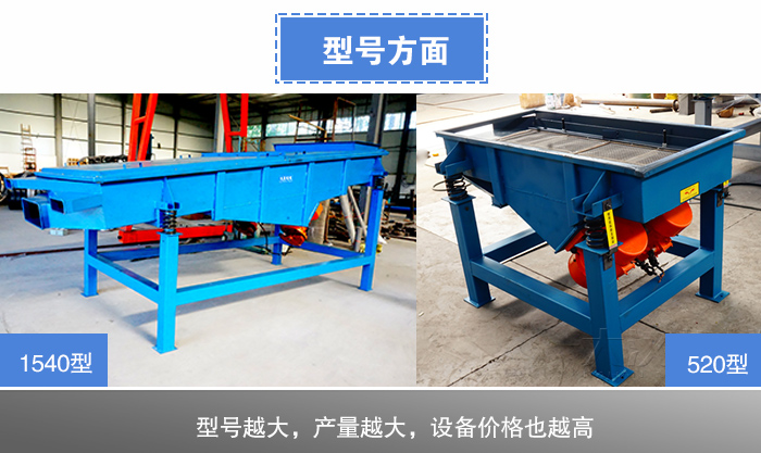 塑料直線振動篩520型到1540型,不同型號的塑料顆粒直線振動篩篩面長度和寬度是不同的,單位時間內處理量也不同,型號越大,產量越大,塑料顆粒直線振動篩價格就越貴,所以用戶要結合自身篩分產量合理選擇型號。