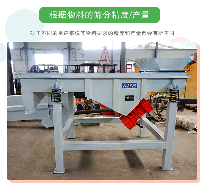 對于不同的用戶來說其物料要求的精度和產量都會有所不同,若想要篩分的粗糙點就可以選擇一些普通的振動篩,要是想要篩分的有多又精細,就要對直線振動篩長和寬進行設計。直線振動篩越長其篩分精度就越高,直線振動篩的寬度越寬其篩分的產量就越高,所以確定好直線振動篩的產量和精度。