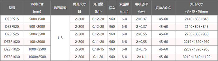 直線振動篩是一種產量大、效率高的篩分設備,該設備常見型號有DZSF520(寬500mm,長2000mm)、DZSF525、DZSF530、DZSF1020、DZSF1025、DZSF1030那么對于這么多型號我們該如何選擇呢?
