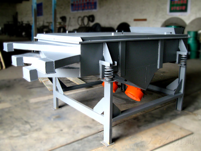 物料從給料機均勻地進入篩分機的進料口,在振動電機的激振下,向出料口方向邊跳動邊篩分,通過多層篩網篩分出數種產品和不合格的篩上、篩下物,分別從各自的出口排出,流入料倉或盛料筒。