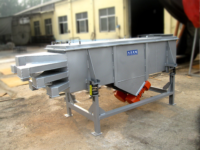 六層直線振動篩為雙振動電機驅動。當兩臺振動電機做同步、反向旋轉時,其偏心塊所產生的激振力在平行于電機軸線的方向相互抵消,在垂直于電機軸的方向疊為一合力,因此篩機的運動軌跡為一直線。兩電機軸相對篩面在垂直方向有一傾角,在激振力和物料自重力的合力作用下,物料在篩面上被拋起跳躍或向前作直線運動,從而達到對物料進行篩選和分級的目的。適用于粒度在0.074—5mm,含水量小于7%,無粘性的各種干式粉狀或顆粒狀物料的篩分。大給料粒度不大于10mm。